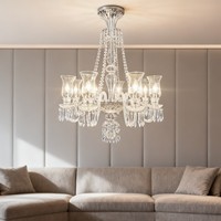 Candelabro LED de lujo francés Cristales K9 de gama alta Decoración elegante para el hogar Loft Apartamento Iluminación de techo Luces colgantes