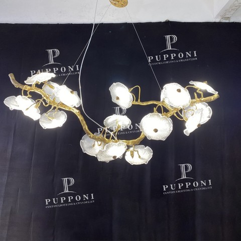 Lustre en cuivre feuille de Lotus fleur cristal beaux plafonniers décoratifs français pastorale Duplex Villa suspension
