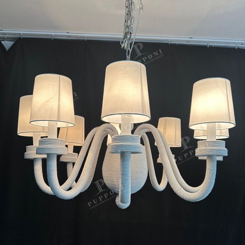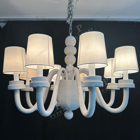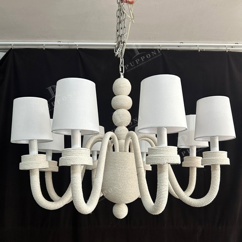 Lustre en corde de chanvre blanc chaud fait à la main 6 têtes lustre américain Style campagne ferme petit tissu moyen