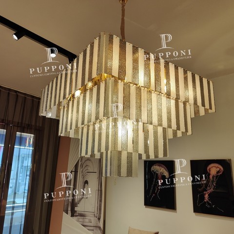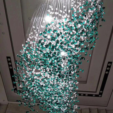 Lustre en verre personnalisé en forme de hall d'hôtel lustre en verre décoratif d'art lustre de plafond en pierre verte lampes suspendues